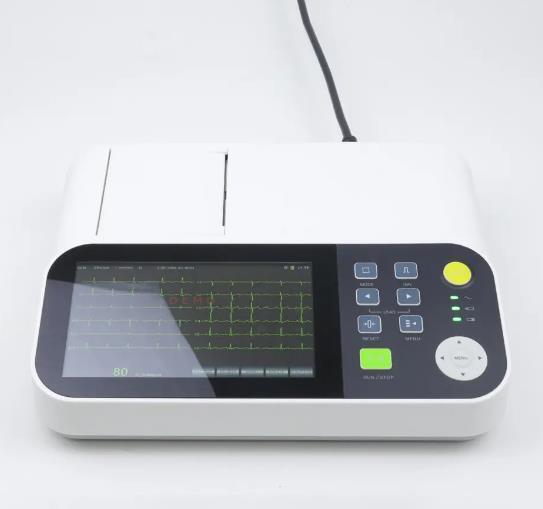 2.Одновременное приобретение 12 лидов, полноэкранный дисплей 12-канальных форм волн ЭКГ. 7' цветный экран, как нажатие кнопки, так и сенсорная работа ((необязательно).